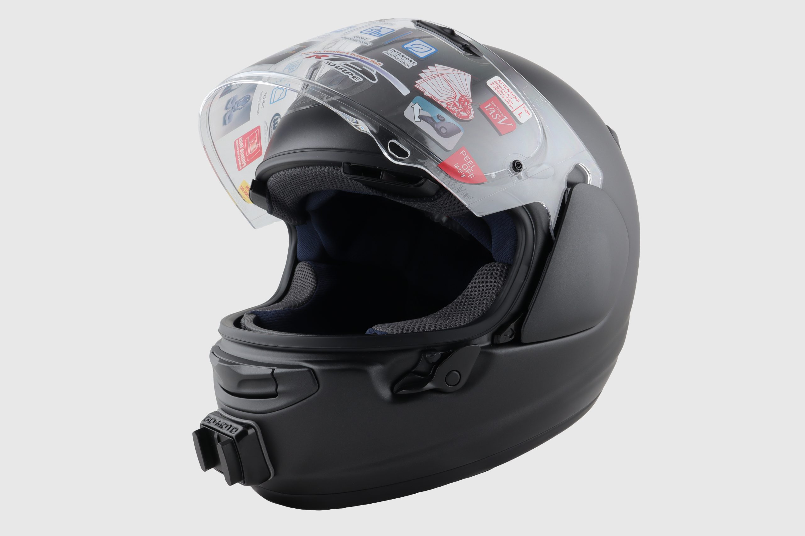 Support sur casque Shoei NXR2. Produit conforme à l’attendu. Conseil de prendre un adhésif supplémentaire au cas où. Bon produit. Compagnie sérieuse que je recommande.