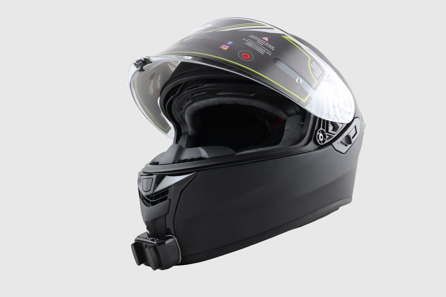 Support sur casque Shoei NXR2. Produit conforme à l’attendu. Conseil de prendre un adhésif supplémentaire au cas où. Bon produit. Compagnie sérieuse que je recommande.