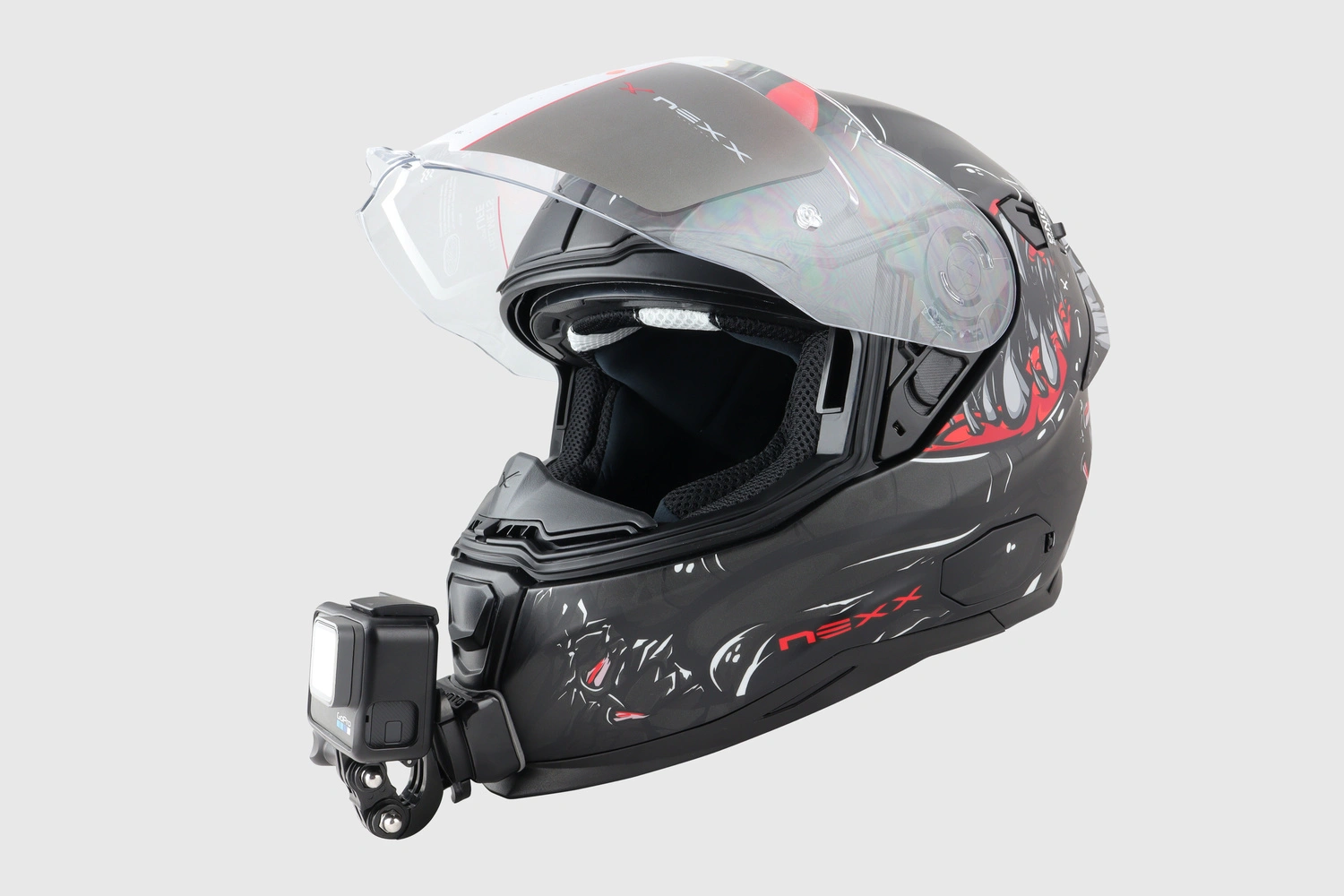 Supporto per casco NEXX SX.100R di qualità superiore da fissare al mento del casco da moto. La qualità premium di un affidabile supporto per casco Go Moto che si attacca direttamente al casco NEXX SX.100R! Si tratta di una soluzione durevole e robusta per il montaggio di GoPro, Insta360 o altre action camera per una vera e propria visione in prima persona che offre la trasparenza necessaria per il caricamento, la condivisione o la sicurezza. Disponiamo di uno scanner 3D avanzato e di alta precisione per creare la soluzione più resistente e più adatta alle vostre esigenze di montaggio sul casco. Il supporto con fibbia in alluminio e la base in plastica realizzata a mano hanno una sensazione di qualità superiore e si adattano al look del casco. È possibile collegare qualsiasi action camera che utilizza un attacco a fibbia senza preoccuparsi di angolazioni video scomode o di perdere la costosa action camera. Il nostro supporto per casco NEXX SX.100R vi garantisce la possibilità di accedere a tutte le prese d’aria e di ottenere un’incredibile qualità video che piacerà ai vostri amici o follower.