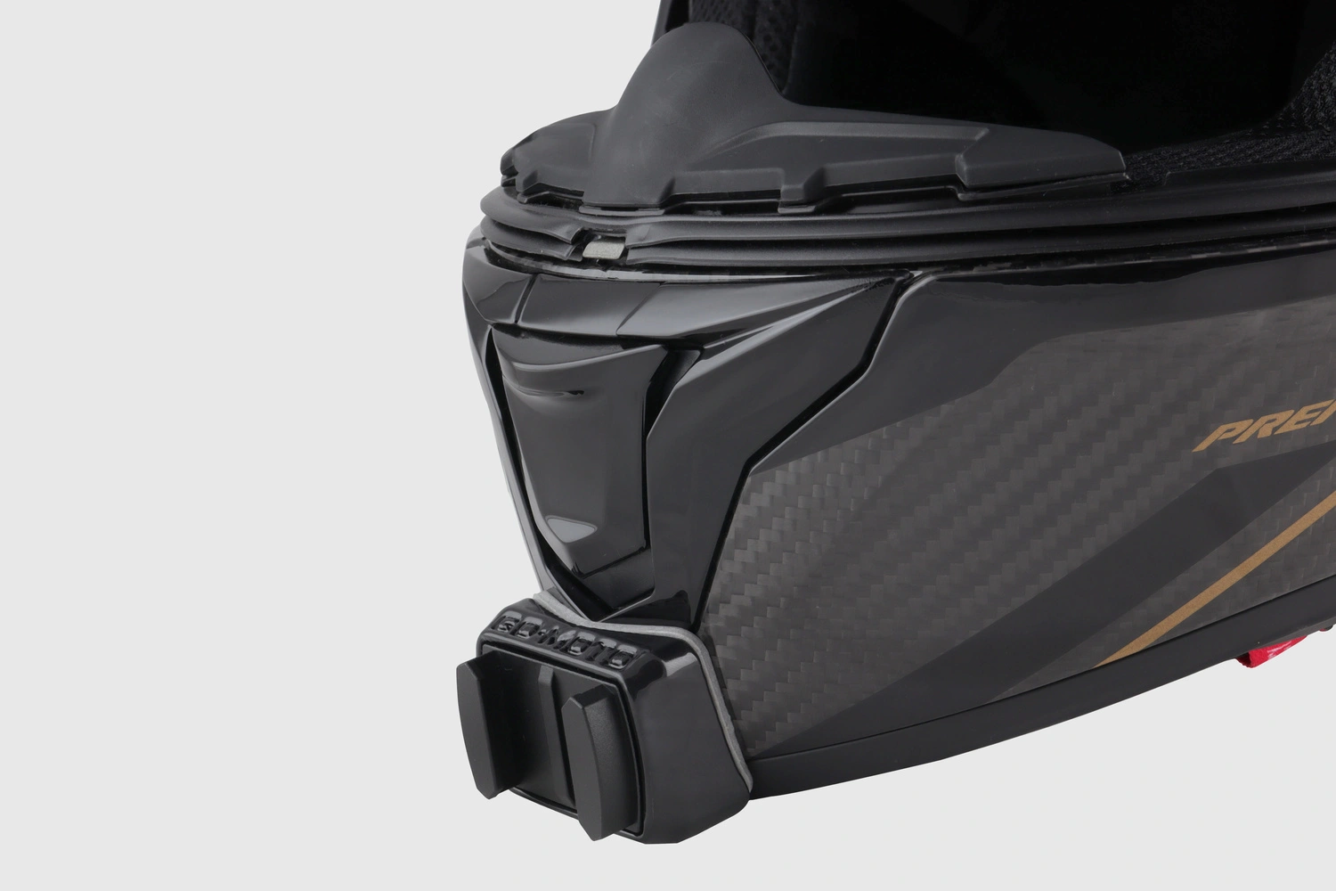 Supporto per casco Premier Devil di qualità superiore da fissare al mento del casco da moto. La qualità premium di un affidabile supporto per casco Go Moto che si attacca direttamente al casco Premier Devil! Si tratta di una soluzione durevole e robusta per il montaggio di GoPro, Insta360 o altre action camera per una vera e propria visione in prima persona che offre la trasparenza necessaria per il caricamento, la condivisione o la sicurezza. Disponiamo di uno scanner 3D avanzato e di alta precisione per creare la soluzione più resistente e più adatta alle vostre esigenze di montaggio sul casco. Il supporto con fibbia in alluminio e la base in plastica realizzata a mano hanno una sensazione di qualità superiore e si adattano al look del casco. È possibile collegare qualsiasi action camera che utilizza un attacco a fibbia senza preoccuparsi di angolazioni video scomode o di perdere la costosa action camera. Il nostro supporto per casco Premier Devil vi garantisce la possibilità di accedere a tutte le prese d’aria e di ottenere un’incredibile qualità video che piacerà ai vostri amici o follower.