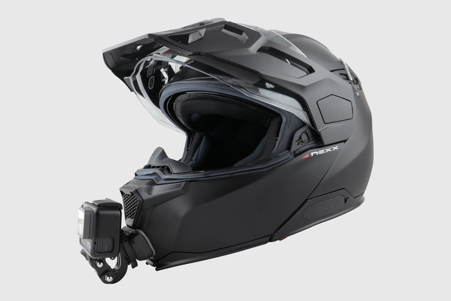 Get the premium quality of a reliable Go Moto chin mount that attaches directly to your NEXX X.VILIJORD helmet! This is a durable and strong-fit solution for mounting your GoPro, Insta360 , or other action cameras for a true first-person point-of-view that delivers the clarity you need for uploading, sharing, or keeping you safe. We use an advanced, high-precision 3D scanner to craft the most durable and tight fit solution for your chin mount needs. The aluminum buckle mount and hand-finished plastic base have a premium appearance which complements the look of your helmet. You can fit any action camera that uses a buckle mount without having to worry about awkward video angles or losing your expensive action camera. Our NEXX X.VILIJORD chin mount design ensures you still have access to all your air vents and get the stunning video quality your friends or followers will love.
